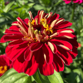 Im Anschluß war ich das erste Mals seit dem Tod von Karin vor 10 Tagen wieder bei Karin und Klaus zu Haus. Ich hatte mich angeboten, beim Adressieren der Trauerpost zu helfen. Letztlich waren wir zur viert und in 2 Stunden fertig- wobei wir in der ersten Stunde im Garten gequatscht und Pflaumenkuchen gegessen haben. Ich denke, wenn jemand gestorben ist, sind alle Dinge, die man zum ersten Mal ohne diesen Menschen macht, sehr seltsam. Auch zu sehen, dass die Zinnien in Karin's Garten sich gegenseitig in ihrer Schönheit übertrumpfen, erschien mir fast zynisch.