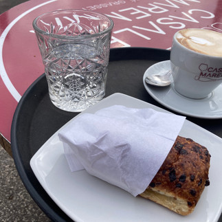 Und wenn ich schon nicht miternten kann, weil mir das zu laut und zu anstrengend ist, war ich froh, eine andere Aufgabe zu haben. Edo hat mir geholfen, der hätte sonst nur im Weg rumgestanden und sich womöglich in den Netzen verheddert. Vor dem Einkaufen habe ich mich erstmal mit dem klassisch italienischen Frühstück gestärkt : )